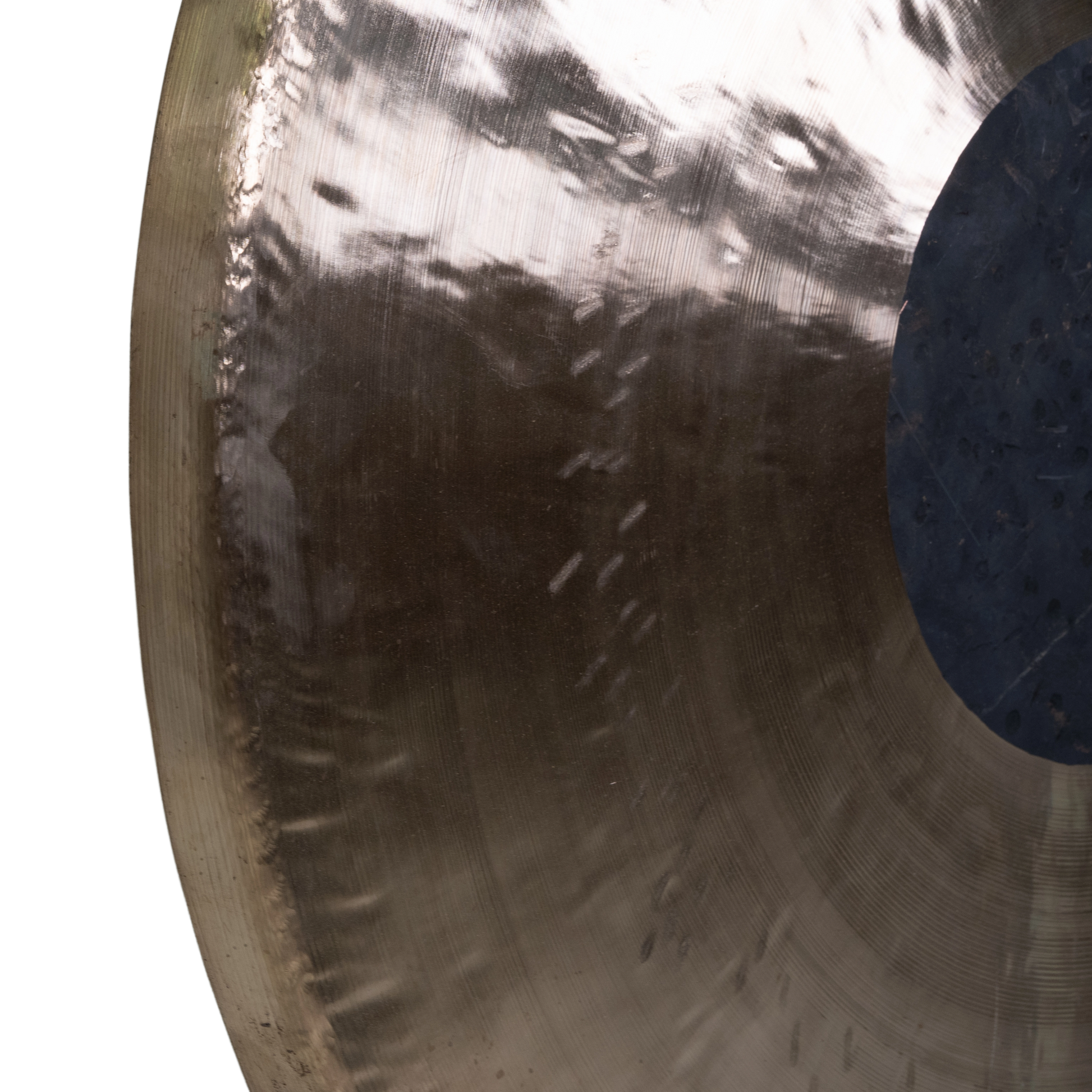 Drawing from the Chau gong tradition, the 40" Flash Gong possesses deeply resonant low-end frequencies that ripple with power. Simultaneously, the wind-gong-style lathing process introduces soaring highs that project clarity and articulation, making this instrument a remarkable fusion of both sound worlds. The result is a gong that speaks effortlessly across the frequency spectrum, ideal for meditation, orchestral use, and sound therapy sessions.