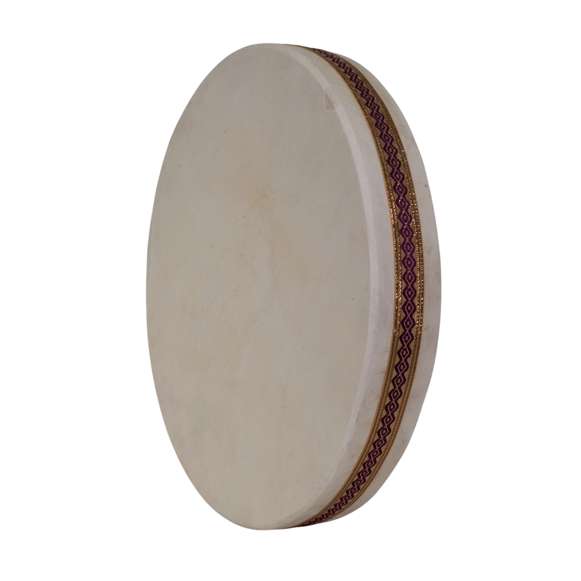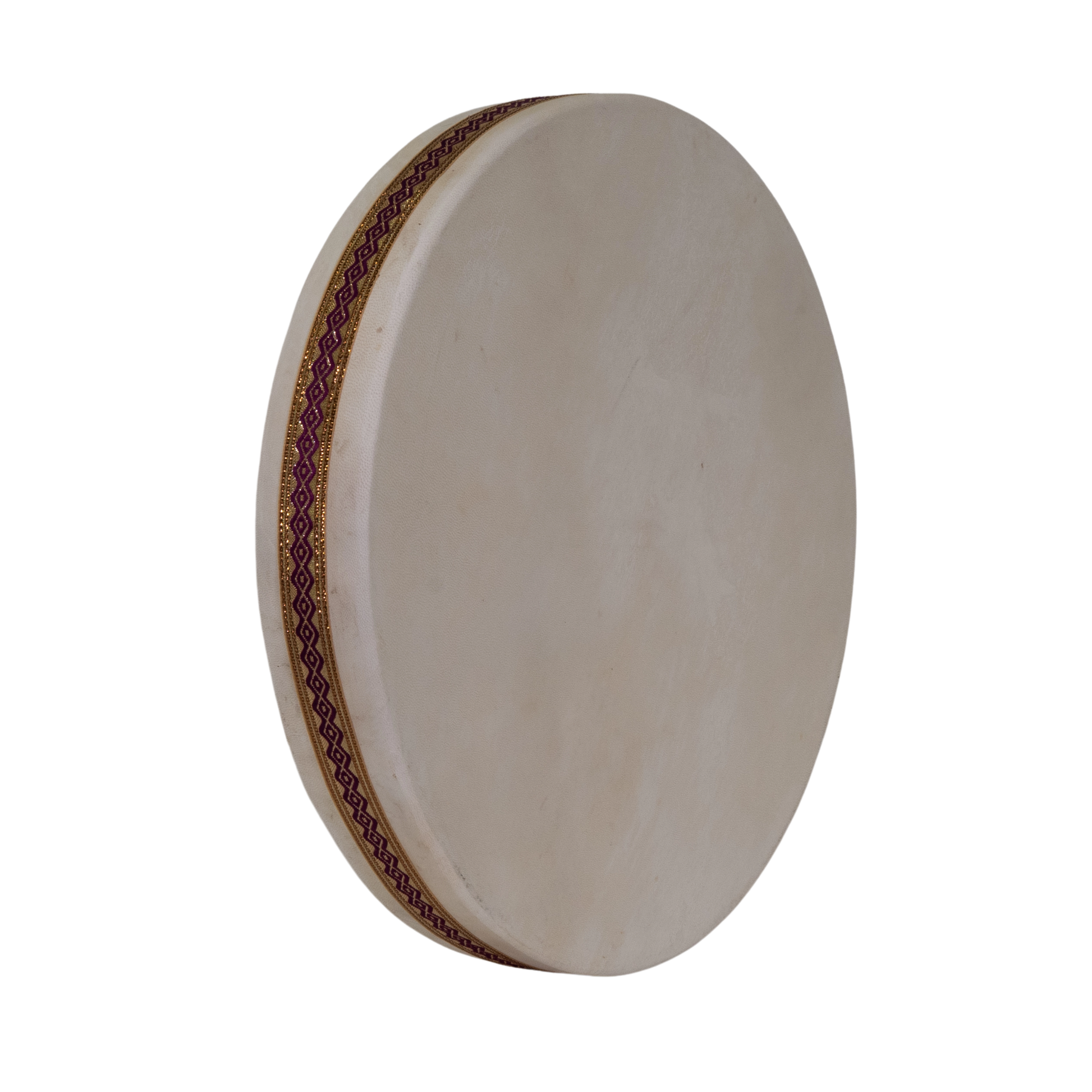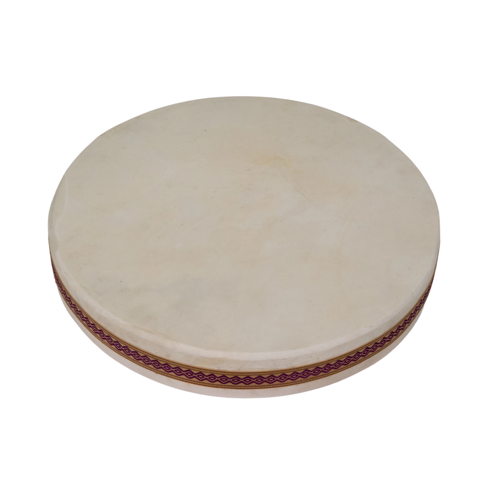 Available in a multitude of sizes, the natural skin heads vary in pitch. This makes the larger drums emulate lower and more thunderous waves with longer sustain, and smaller drums emulate higher pitched waves with less surface area for sustain.
