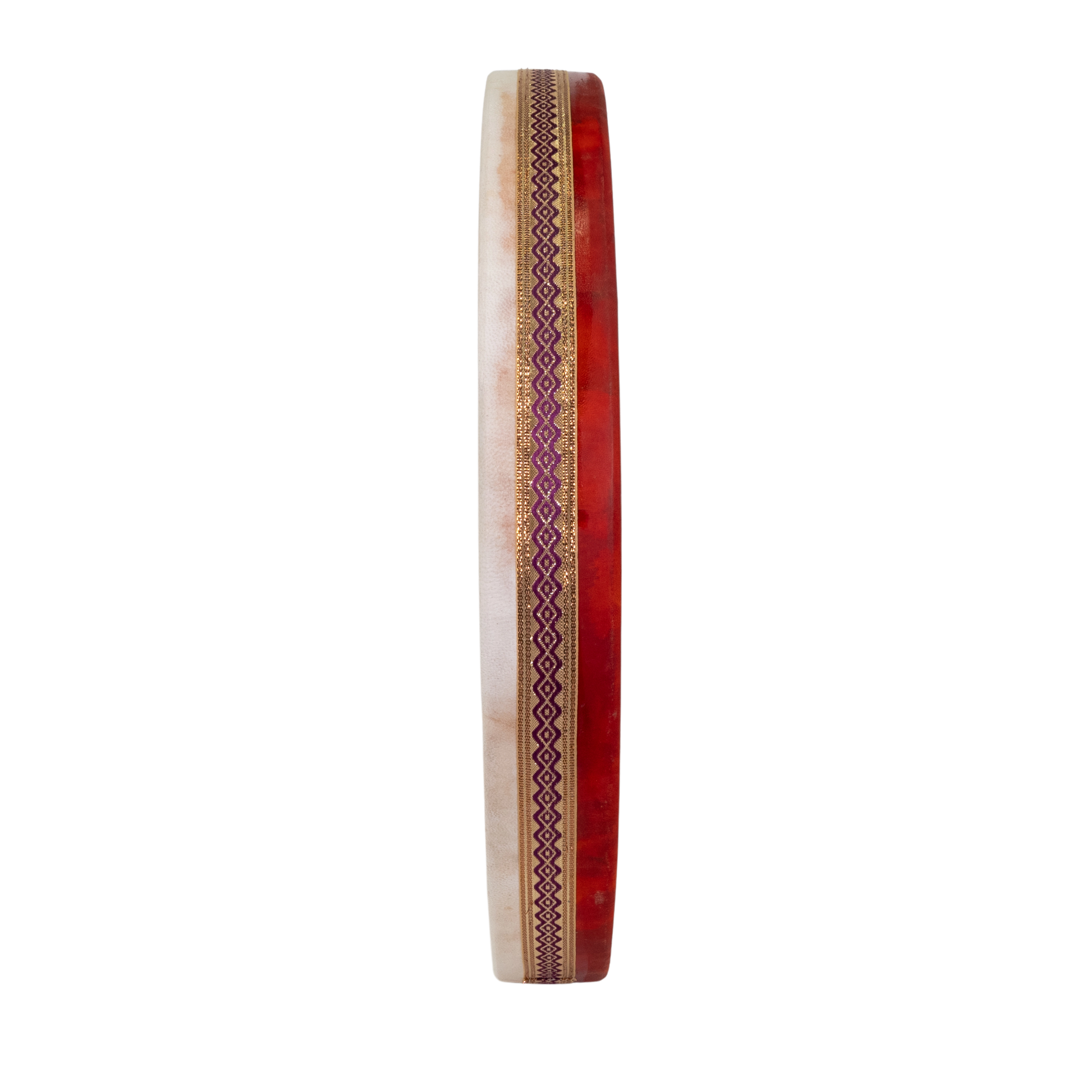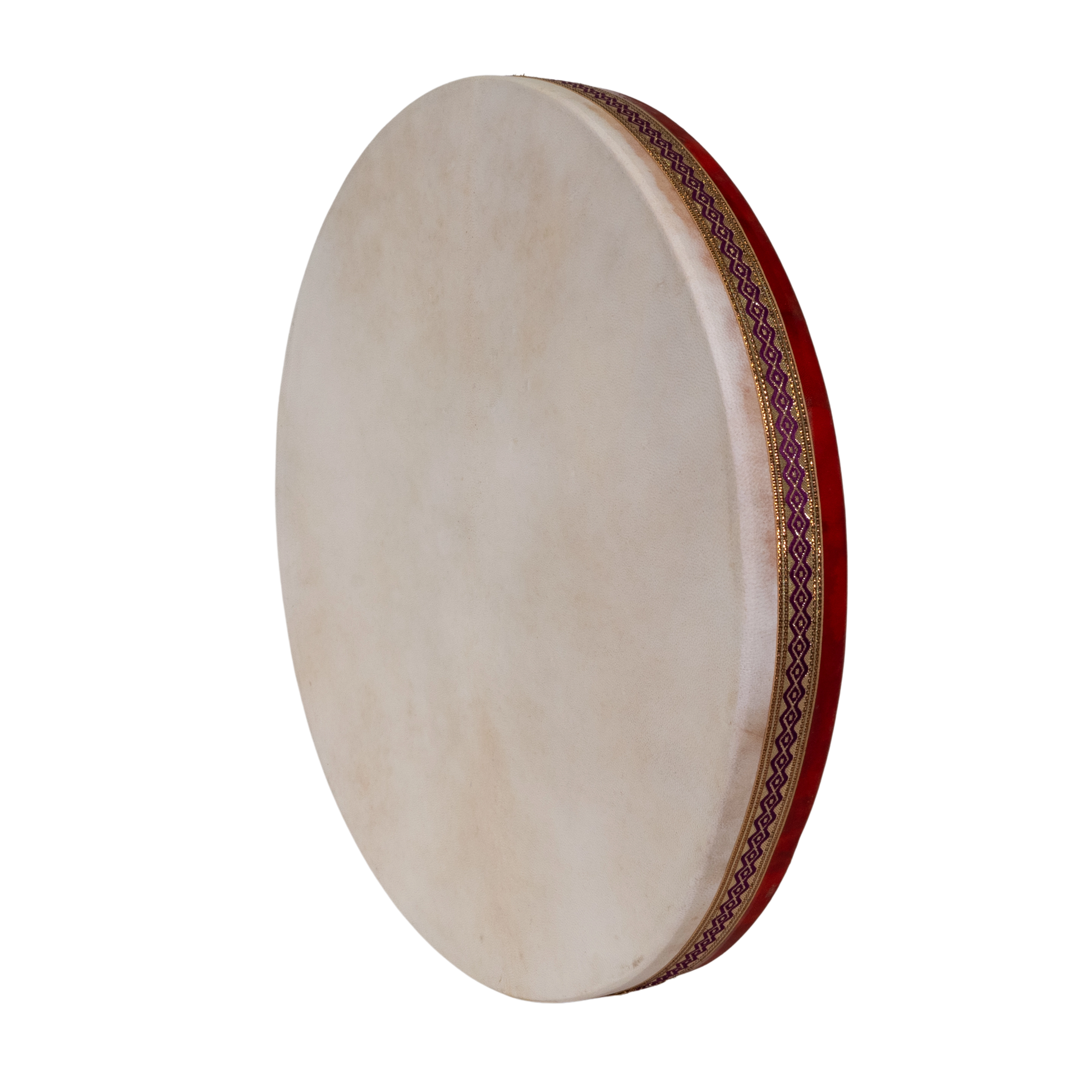 Available in a multitude of sizes, the natural skin heads vary in pitch. This makes the larger drums emulate lower and more thunderous waves with longer sustain, and smaller drums emulate higher pitched waves with less surface area for sustain.